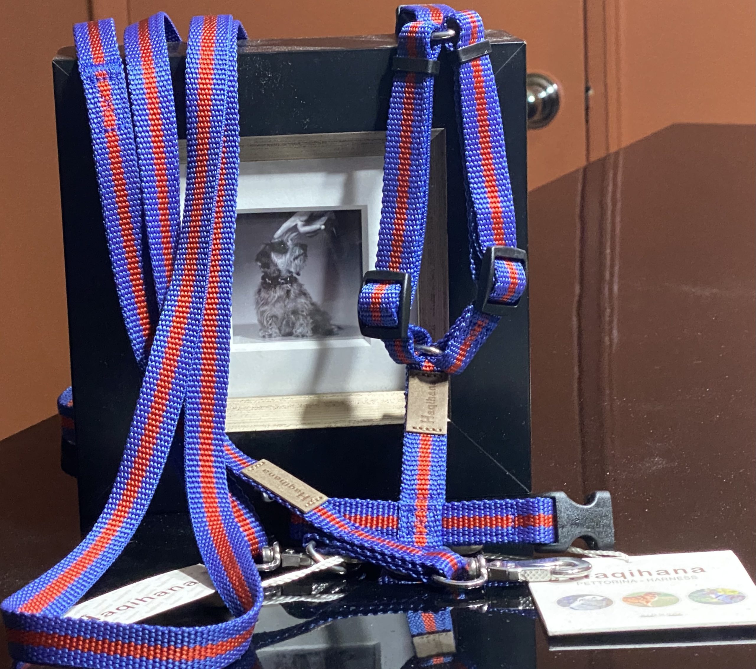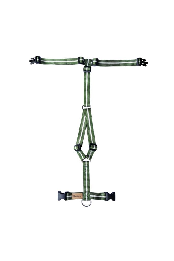 Haqihana harnesses feature a carefully considered ergonomic design that is easy to adjust to fit perfectly and to provide maximum comfort and safety for both dogs and humans. These harnesses truly combine form and function. Haqihana harnesses allow dogs to move naturally without feeling restricted. Walking with your dog on a Haqihana harness is pure pleasure for both humans and dogs.